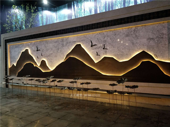 滁州《鐵藝長(zhǎng)廊,玻璃鋼山巒,鍛銅地雕》